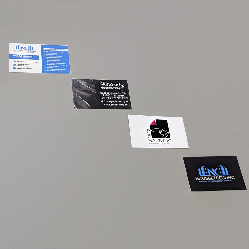 Wir bieten eine breite Palette an Papier-Drucksorten – vom klassischen Visitenkarten über Flyer bis zu Plakaten und Foldern uvm.